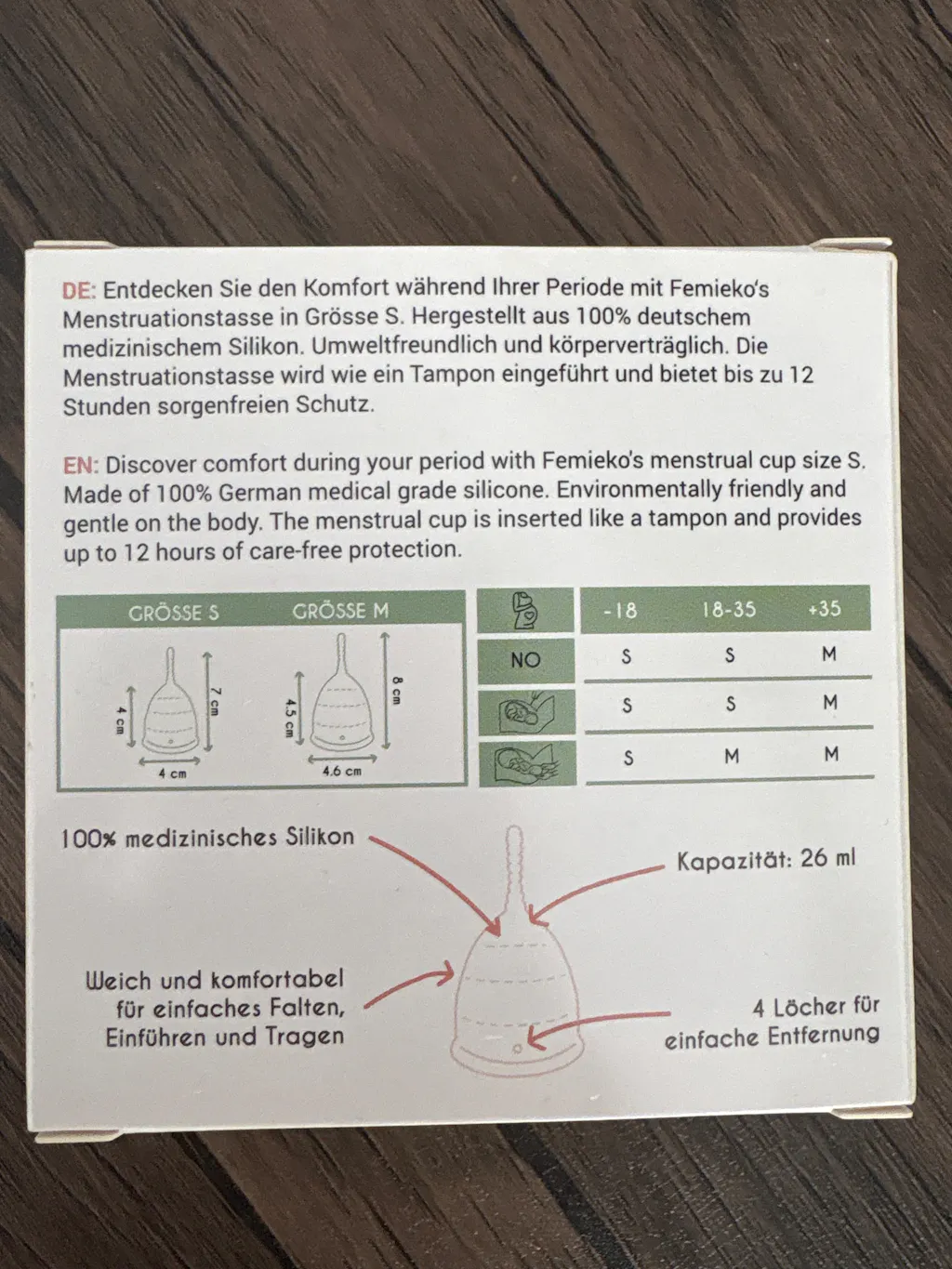 Pentru igienă optimă, clătește cupa menstruală cu apă rece pentru a elimina orice reziduuri. Folosește apoi spray-ul dezinfectant FemiEko® în loc de săpun, deoarece protecția antibacteriană se activează la spălare. Datorită tehnologiei Saniconcentrate™, nu mai este necesară sterilizarea frecventă sau fierberea cupei menstruale. Ai un produs sigur, pe care îl poți folosi oriunde și oricând.