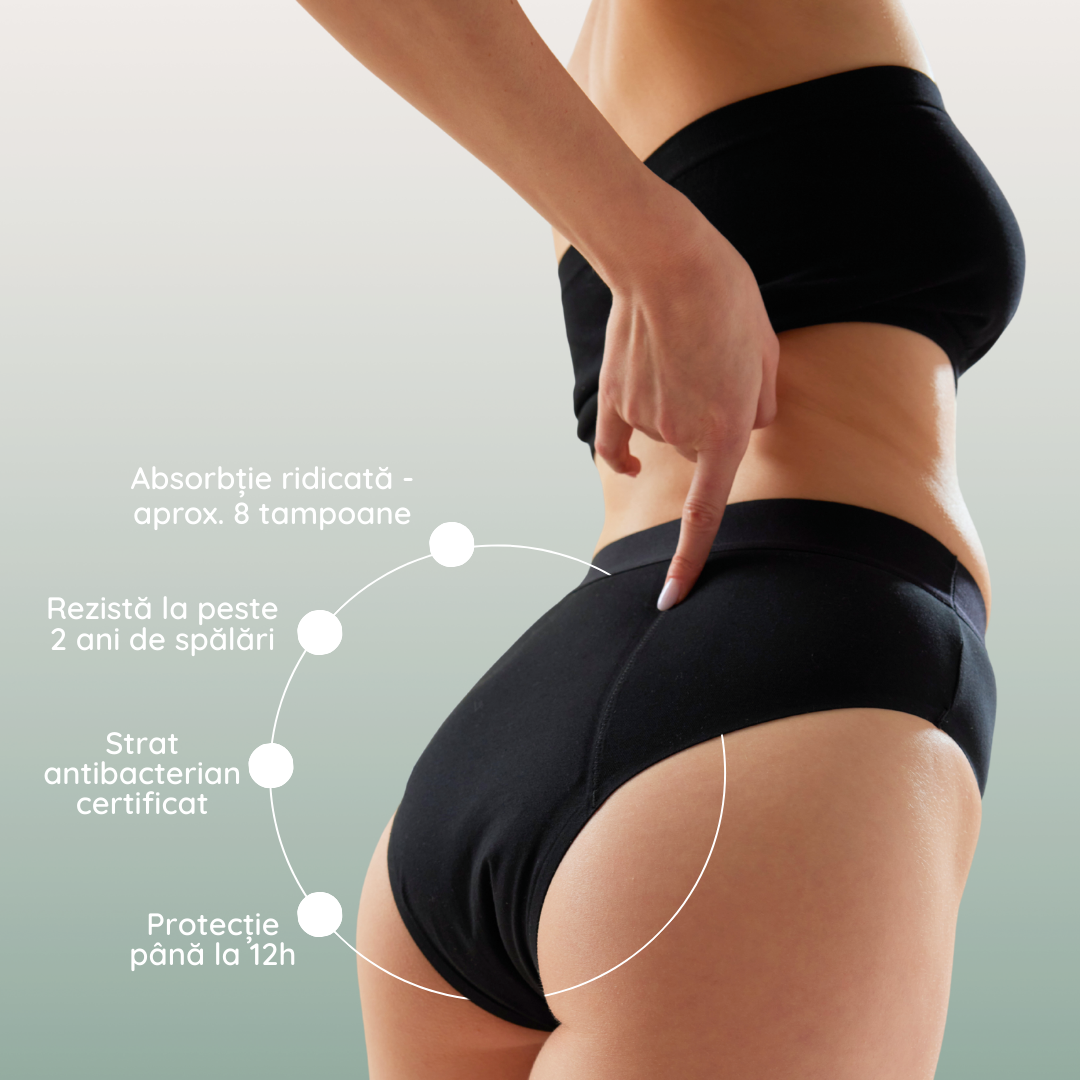 Chiloții menstruali trebuie să aibă eticheta adezivă de igienă aplicată pe zona absorbantă intactă. Dacă aceasta este îndepărtată sau ruptă, produsul nu mai poate fi returnat.