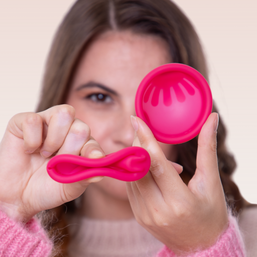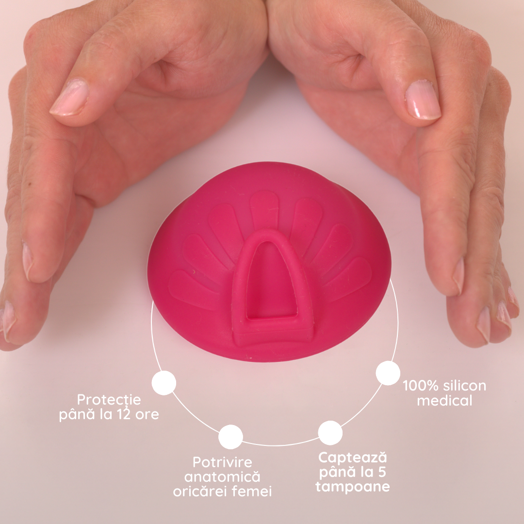 • Un disc menstrual Femi.Eko®, ideal pentru mișcare și poziții dinamice.