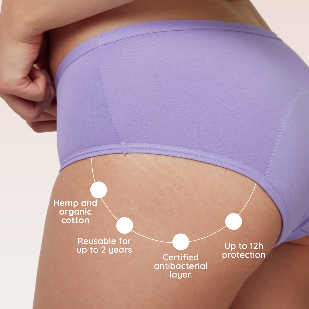 • Un slip menstrual Maja, ideal pentru începutul sau finalul menstruației.